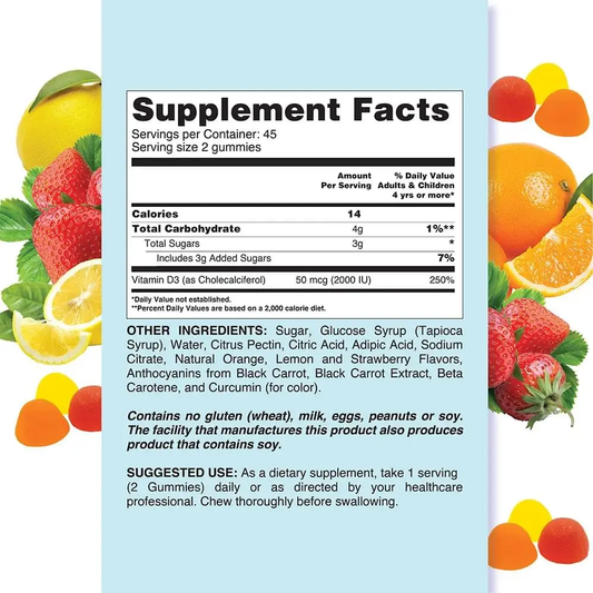 Livs Vitamin-D (2000IU) Orange,Lemon&Straw Flavor 90 Gummies